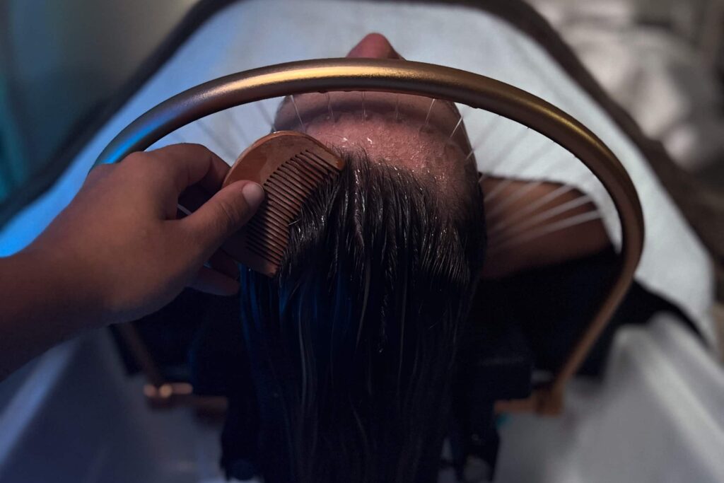 Tijdens de behandeling worden je schouders, nek en hoofdhuid heerlijk gemasseerd.